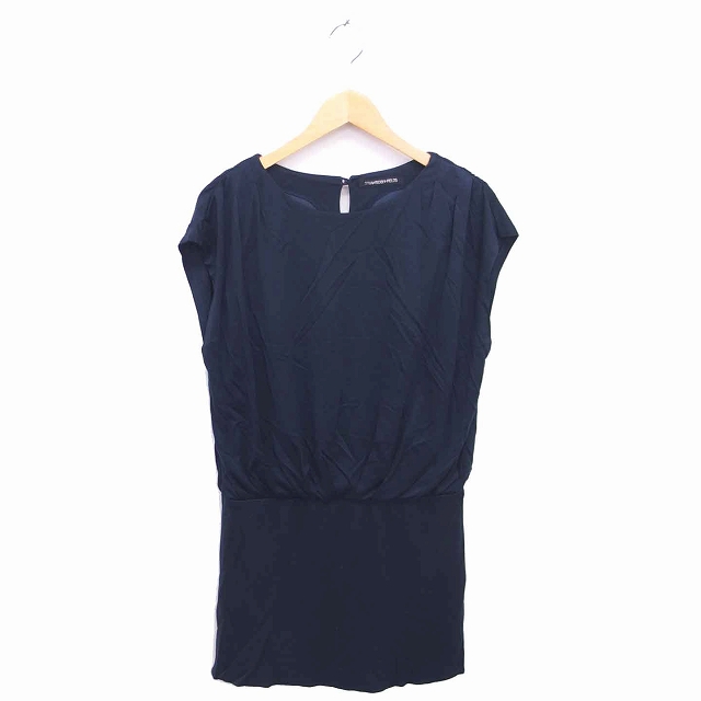 【中古】ストロベリーフィールズ ワンピース ひざ丈 ボートネック プルオーバー 半袖 ネイビー 濃紺 /TT8 レディース