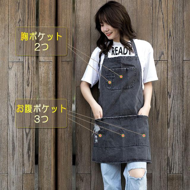 デニムエプロン 北欧風 男女兼用 ガーデニング キッチン ワークエプロン 前掛け 作業エプロン 大人用 エプロン デニム素材エプロン 首掛けエプロン スタッフエプロン 料理教室 飲食店 保育士 介護福祉士 DIY