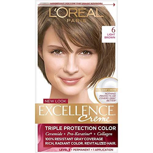 ロレアル パリ エクセレンス クリーム パーマネント ヘア カラー、6 ライト ブラウン、100% グレー カバレッジ ヘアダイ