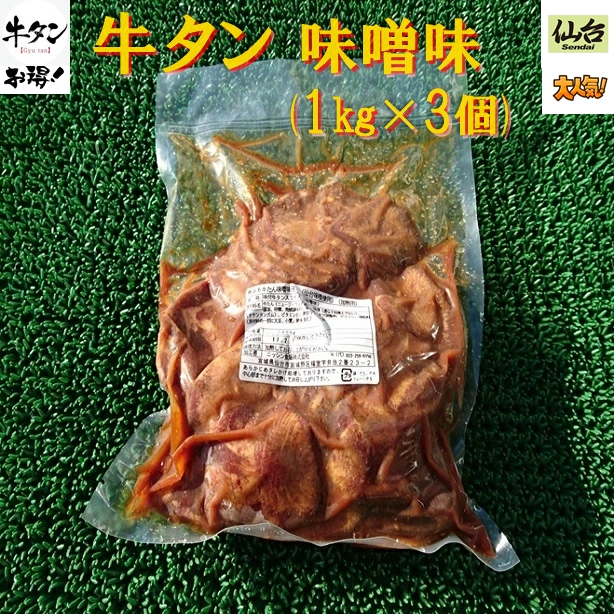 送料無料 セット売り 訳あり お得用 牛タン 味噌味 仙台 味噌 使用 1kg×3個 冷凍 ギフト プレゼント 贈答 海鮮 グルメ 魚介 海産物 お歳暮