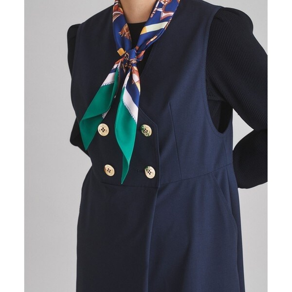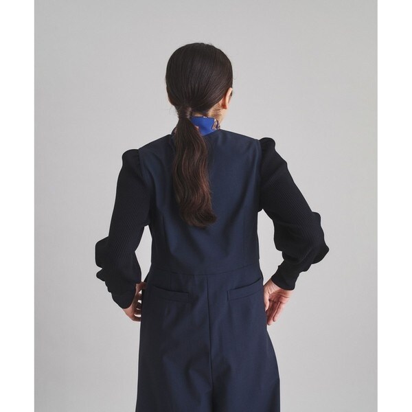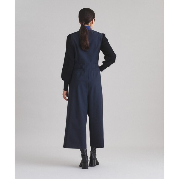 綺麗めに着て頂ける、大人仕様のサロペット。スーツ地素材を使用し、メタルボタンをトッピングしたダブルプレスト仕様。ボトムスはゆとりのあるサイズ感でレッグラインをカバーし、安心感のあるデザインに仕上げています。足首が覗く軽快な丈感に拘り、ブーツ合わせも綺麗に整う一品に仕上げました。すっきりとしたVネック&ノースリーブなので、中にシアーハイネックやボウタイブラウス、パフスリーブを添えた今年らしいレイヤードスタイルにぴったりです。あらゆる日常に寄り添う、アーバンムード漂う即戦力アイテムです。