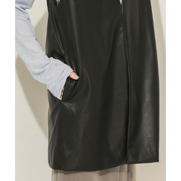 【モードな雰囲気漂う、レイヤードが楽しめるフェイクレザーベスト】