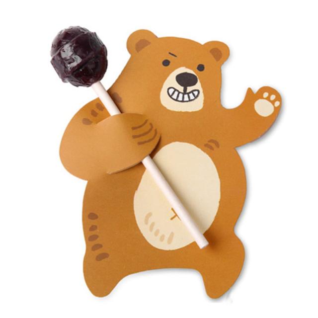 可愛い熊(くま)をモチーフにした棒付きのスティックキャンディーをデコレーションできる結婚式のウエディングパーティーやハロウインパーティーにオススメのラッピングペーパーを5枚セットにしたアイテム。