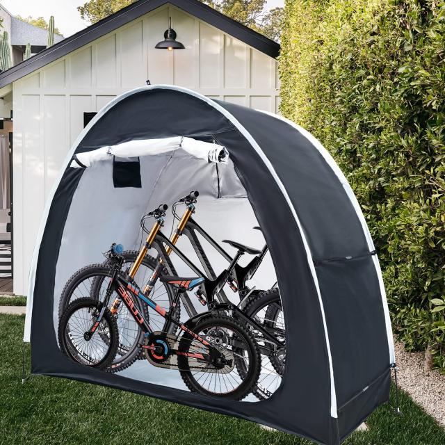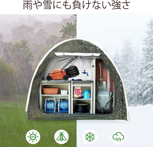 【持ち運び、取り付けは便利】重さは2.1kg、速く取り外すデザイン、梱包袋に入れることができ、持ち運び便利。折りたたみ可能で、ドライブ、郊外観光旅行、臨時置き場、家庭用戸外収納にも大活躍です。自転車だけでなく、農業用品、園芸資材の収納庫としてもご利用いただけます。