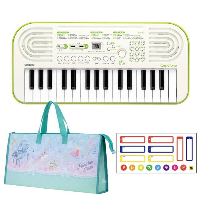 CASIO ミニ鍵盤キーボード SA-50(ホワイト) + 持ち運びに便利なバッグ(トゥインクル) セット【お名前ドレミシール付】