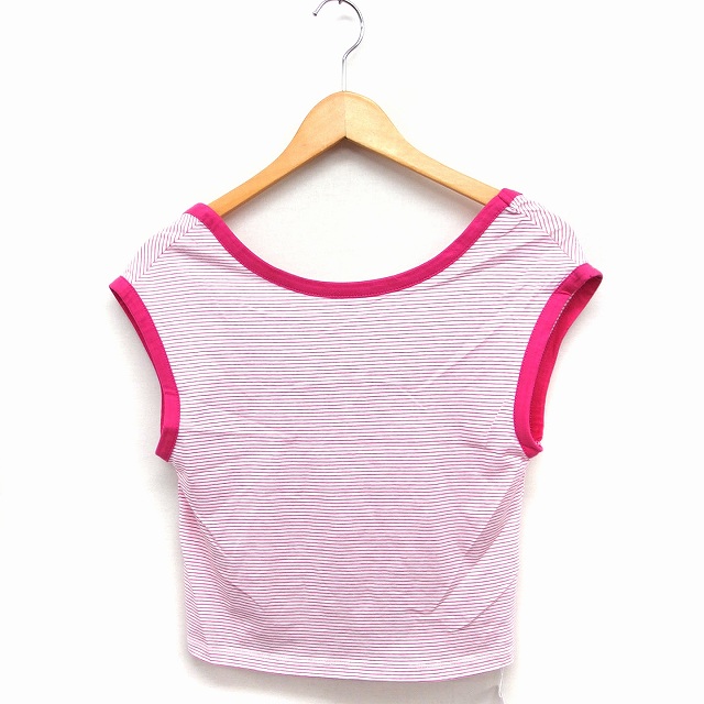 【中古】未使用品 ディスコート Discoat タグ付き ボーダー柄 カットソー Tシャツ ノースリーブ ボートネック ピンク
