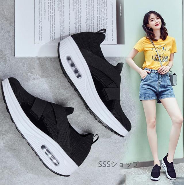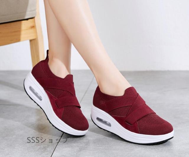 厚底スニーカー ウォーキングシューズ 船型底 スリッポン スニーカー レディース ダイエット 歩きやすい 軽量 美脚