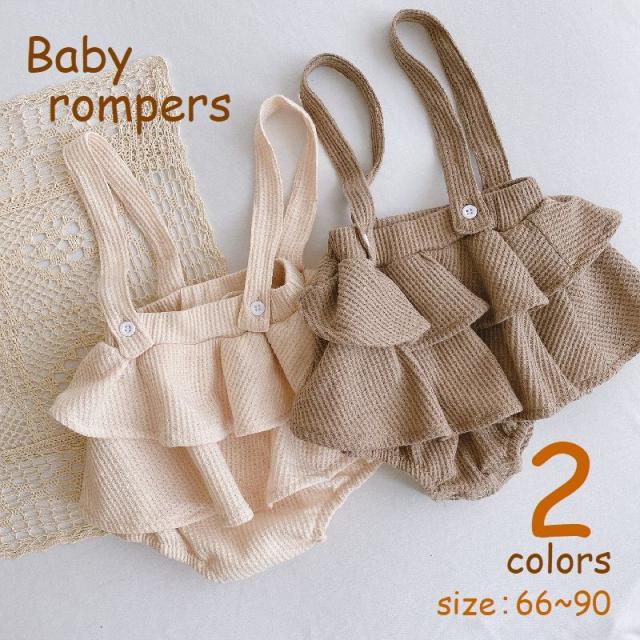 ロンパース ベビー服 サスペンダースカート サロペット 赤ちゃん 女の子 サロペスカート 肩紐 取り外し可 ワッフル ティアード