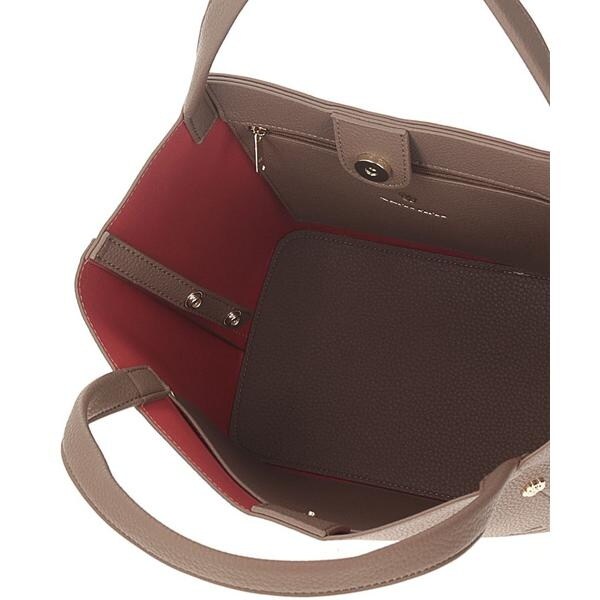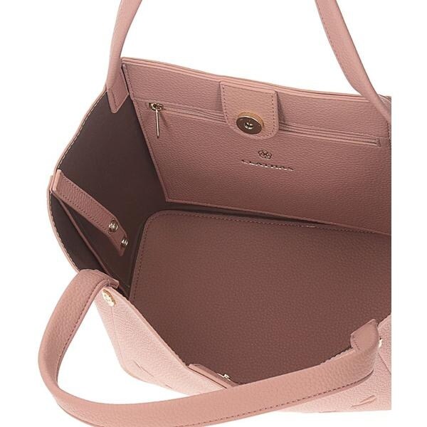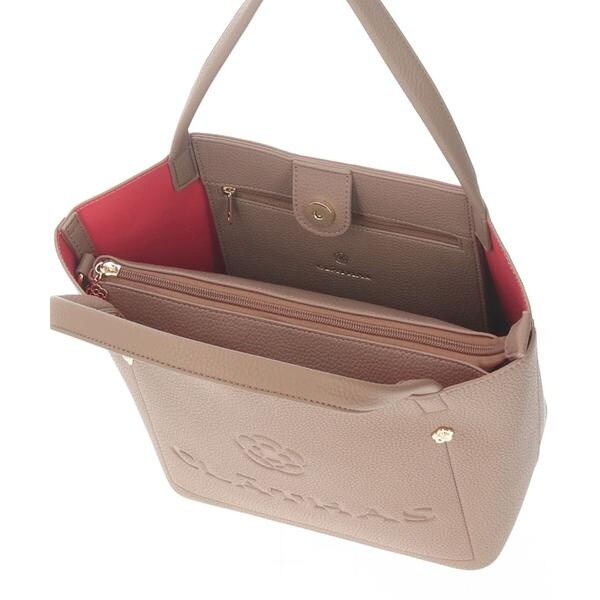 はっとする色合わせが目を引く一枚合皮のざっくりバッグシリーズ「エクラ」。トレンド感ときちんと感がある、カジュアル過ぎないカメリアとロゴのエンボスが新鮮なデザイン。スタイルシーンを選ばないシンプルなデザインなので、日常使いにピッタリです。ハンドルはふっくらした芯入りで、たくさん荷物を入れても負担になりにくい仕様です。トートにはマチありのポーチ付き。ショルダーを着脱できる仕様なので、中に入れて仕切りポーチとしても、単体でショルダーバッグとしても使用できます。このポーチは幅が本体と幅がピッタリのサイズなので中で動く事無くお使いいただけます。B5サイズ収納可。※少しはみ出しますがA4も入ります。【製品寸法】大F : 縦:22.5, 横:24−36.5, マチ:14, 持ち手:39小F : 縦:19.5, 横:21.5−28, マチ:10, ショルダー:72−126【素材】合成皮革【メーカーサイズ寸法(実寸)】F : 幅:24−36.5cm, 底マチ:14cm, 持ち手高さ:39cm
