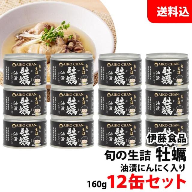 送料無料 伊藤食品 牡蠣油漬け 12缶セット にんにく入り アヒージョにおすすめ! 化学調味料不使用 あいこちゃん AIKOCHAN 缶詰 セット 保存食