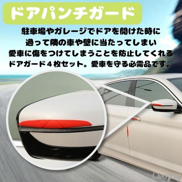 駐車場やガレージでドアを開けた時に隣の車や壁に当たってしまって愛車に傷をつけてしまうことを防止してくれるドアガード4枚セットになります。
