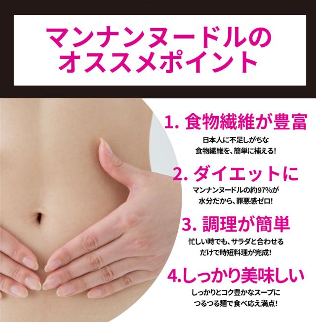 マンナンヌードル・スープ[こんにゃく精粉(国産),食塩/水酸化カルシウム(蒟蒻用凝固剤),調味料(核酸等),酸化防止剤(V.C),結晶セルロース,カロチン色素]