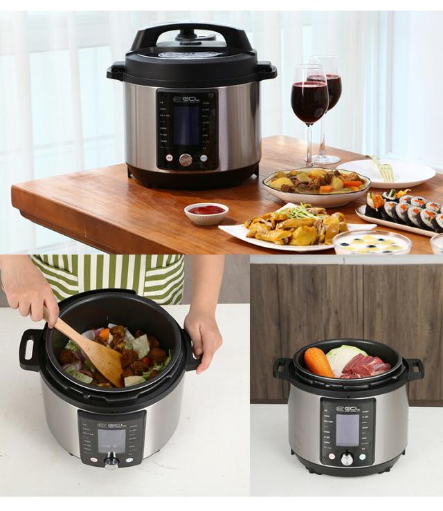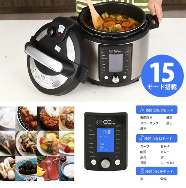 ECL電気圧力鍋1台で表面焼き、スロークック、蒸しなど5種類の調理モード、