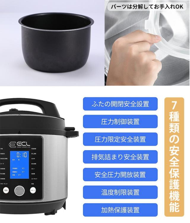 ■検索用キーワード:ECL電気圧力鍋5.0L 電器圧力鍋 圧力鍋 一台15役 電気鍋 大容量 調理家電 キッチン家電 蒸し 低温 スロークック 焼き調理 保護機能 EC-EPC5L 本格料理 圧力調理 温度調理 スロークッカー 安全機能 圧力調整 低温調理 蒸し料理 炊飯器 炊飯 スープ おかゆ 食材モード 保温 予約 タイマー 時間設定 再加熱 軽量カップ しゃもじ 作り置き 大家族 7人 6人 5人 4人 3人 2人 1人 9合 8合 7合 6合 5合 4合 3合 2合 ほったらかし スイッチ 調理モード 蒸し料理 スチーム ワーママ 主婦 子育て 大容量 安全機能 電気調理器 時短調理 加圧調理 マルチクッカー マルチ鍋 加圧鍋 電気式 自動調理 電気鍋 万能鍋 圧力調理 スロークッカー 時短 短時間 便利 保温 全自動 ほったらかし おもたせ 贈答品 返礼品 お返し サプライズ 記念日 誕プレ 誕生日プレゼント クリスマスプレゼント お中元 お歳暮 暑中見舞い 残暑見舞い 寒中見舞い 余寒見舞い 進級祝い 進学祝い 入学祝い 卒業祝い 成人祝い 成人式 入籍祝い 新築祝い 内祝い 引き出物 引っ越し祝い 引越し祝い 引越祝い 転居祝い 入社祝い 就職祝い 転職祝い 昇進祝い 就任祝い 退職祝い 送別 開店祝い 開業祝い 開院祝い 移転祝い 出店祝い 新店祝い 周年祝い オープン祝い 大学生 社会人 敬老の日 定年祝い 還暦祝い 友人 友達 友だち 彼女 妻 母親 彼氏 夫 父親 10代 20代 30代 40代 50代 60代 70代