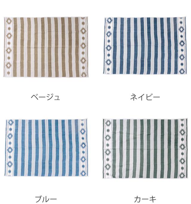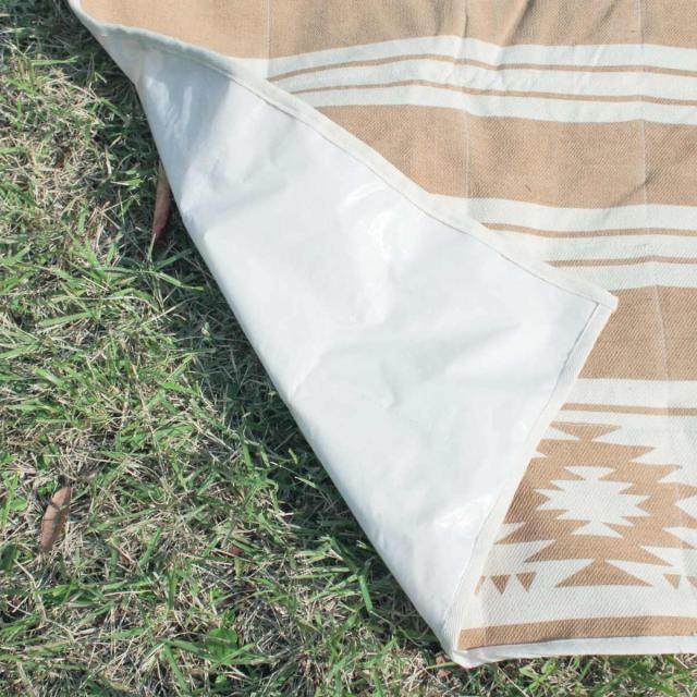 表面は柔らかいコットンの素材、裏面はビニール加工されているので屋内外問わず幅広くお使いいただけます。温かみのあるナチュラルなカラーリング、オリエンタルなボーダー柄によってピクニックや行楽などのアウトドアシーンをオシャレに演出してくれるレジャーシートです。