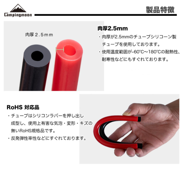 ・チューブはシリコンラバーを押し出し成型 し、使用上有害な気泡・変形・キズの無い RoHS規格品です。