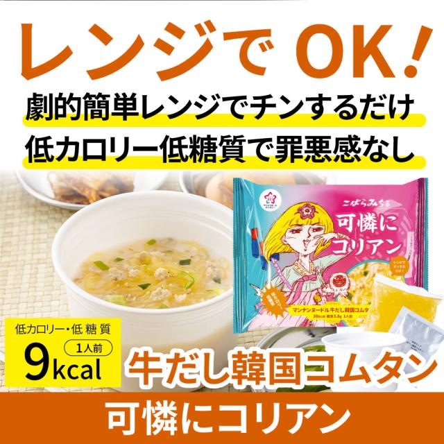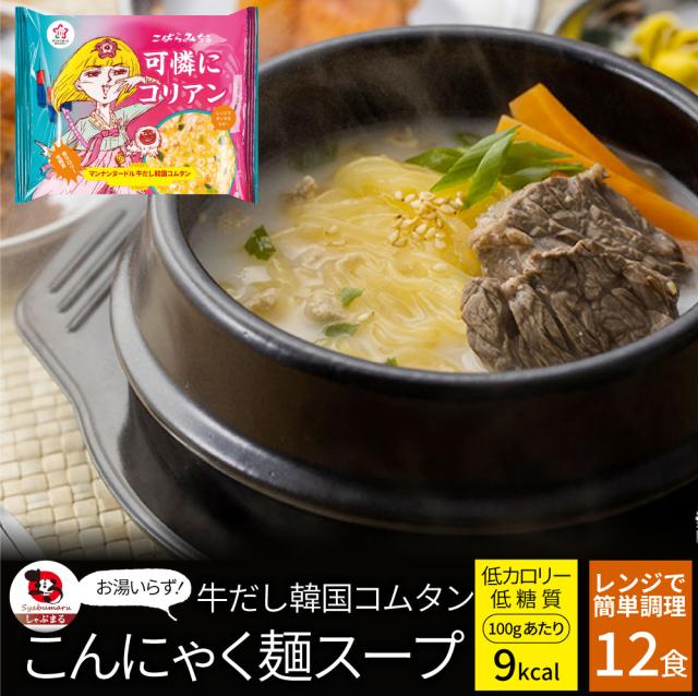 牛だし韓国コムタン こんにゃく麺 スープ 12食 こばらみちる 可憐に コリアン お湯いらず 低カロリー 低糖質 100gあたり9kcal レンジで簡単 お湯いらず マンナン 蒟蒻 こんにゃく ヌードル 備蓄 備蓄食 食料 備蓄品 お肉の しゃぶまる