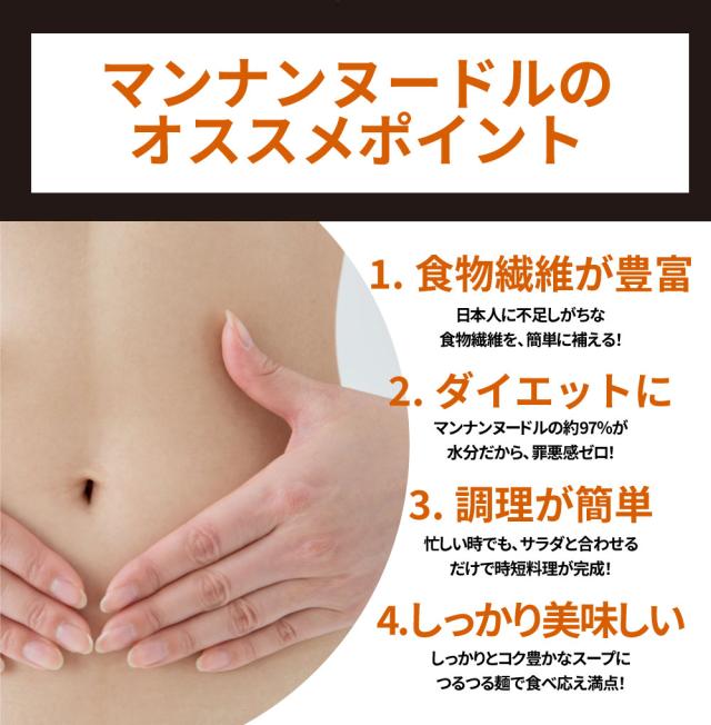 マンナンヌードル・スープ[こんにゃく精粉(国産),食塩/水酸化カルシウム(蒟蒻用凝固剤),調味料(核酸等),酸化防止剤(V.C),結晶セルロース,カロチン色素]