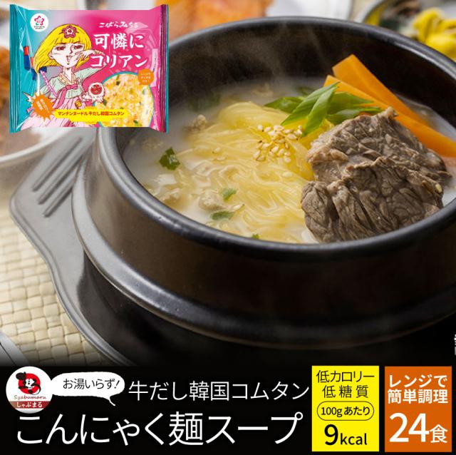 牛だし韓国コムタン こんにゃく麺 スープ 24食 こばらみちる 可憐に コリアン お湯いらず 低カロリー 低糖質 100gあたり9kcal レンジで簡単 お湯いらず マンナン 蒟蒻 こんにゃく ヌードル 備蓄 備蓄食 食料 備蓄品 お肉の しゃぶまる