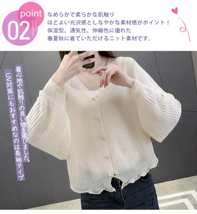 カーディガン 春新作 UVカット 紫外線対策 日よけ セーター 薄手 無地 春 夏 秋 レディース Vネック 前開き 長袖 肩掛け 日焼け止め 冷房対策 トップス ニット 入学式 入園式