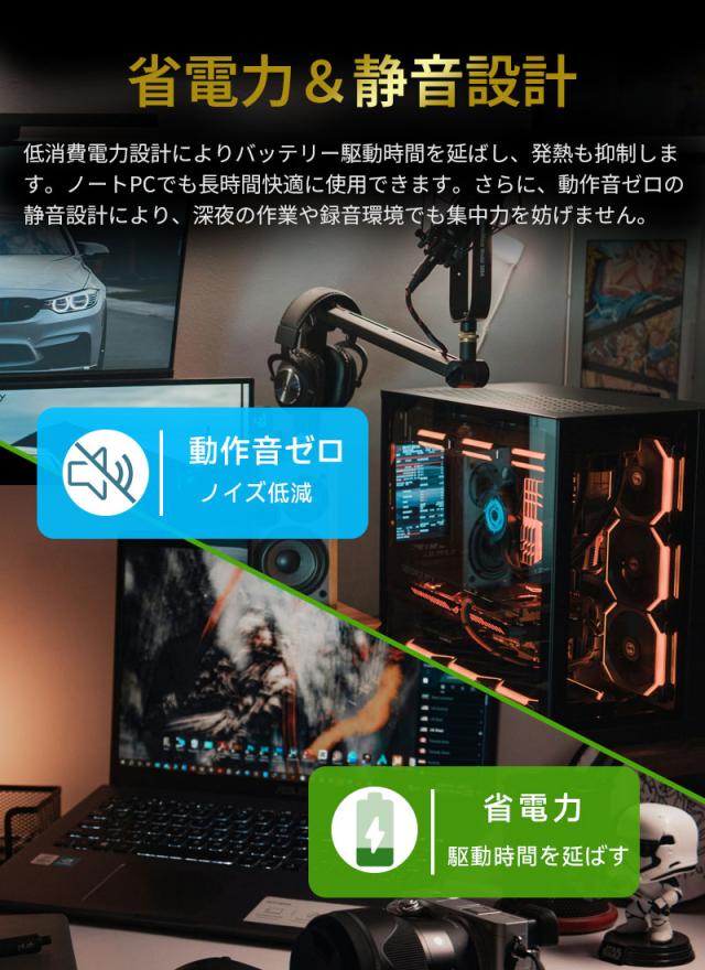 特徴:軽量で耐久性に優れたアルミ製筐体を採用することで、優れた堅牢性を実現します。放熱性はもちろんのこと、摩耗にも耐えます;