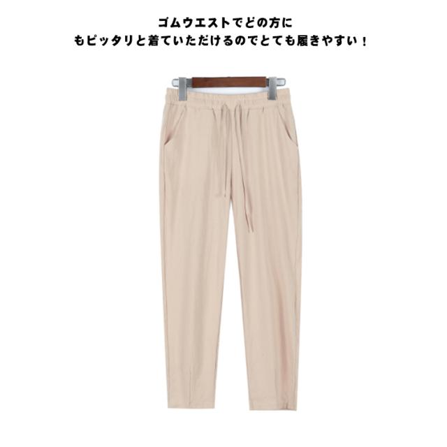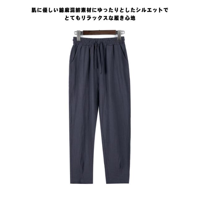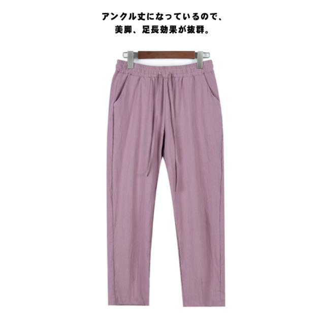 送料無料 パンツ 麻 リネン レディース 夏 涼しい リネンパンツ 棉麻パンツ ロングパンツ テーパードパンツ クロップドパンツ 9分丈 ウエストゴム 薄手 シンプル 無地 楽ちん きれいめ 春 高校生 大学生 リラックス ナチュラル 軽い 上品