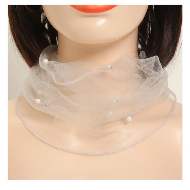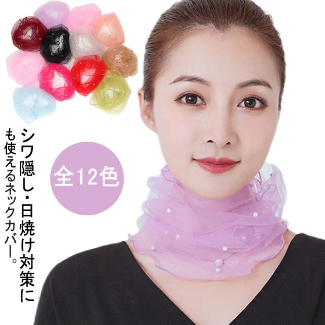 ネックカバー レディース チュール パール シワ隠し 日除け 日焼け対策 ネックウォーマー 日焼け防止 首元隠し全12色