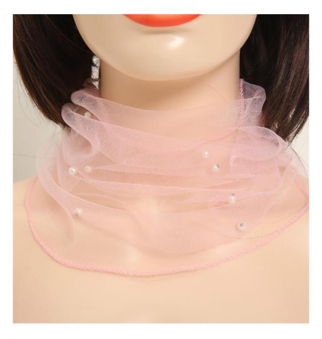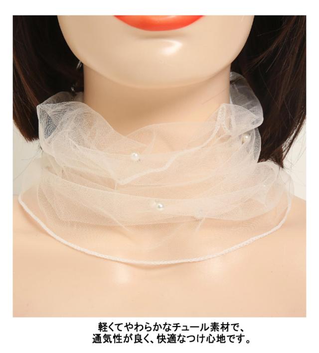 | シワ隠し・日焼け対策にも使えるネックカバー。 チュールとパールで気になる首もとを美しく隠す。 軽くてやわらかなチュール素材で、通気性が良く、快適なつけ心地です。 ストレッチの効いたチュール素材だから着脱も楽々です。 | |