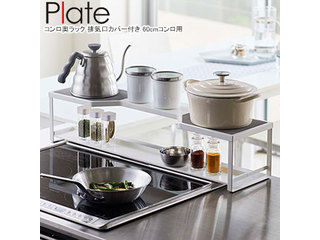 コンロ奥ラック プレート 排気口カバー付き 60cmコンロ用 ホワイト