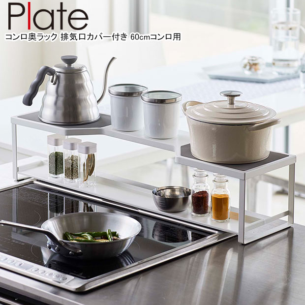 YAMAZAKI 山崎実業 コンロ奥ラック プレート 排気口カバー付き 60cmコンロ用 ホワイト