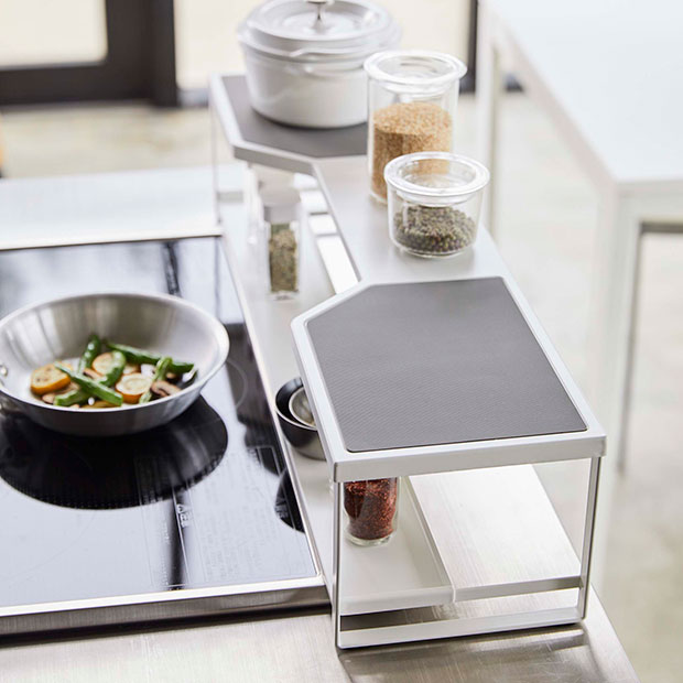 鍋やフライパンも置ける熱に強く滑りにくいシリコーンマット付き。