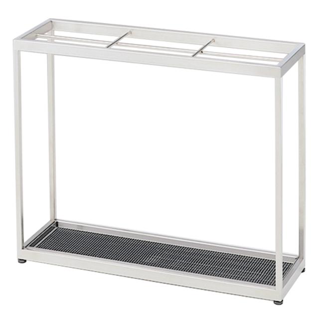 オフィスや店舗におすすめの傘立てです。奥行き18cmのスリムタイプなので、エントランスのスペースを有効に使うことができます。フレームだけのシンプルなデザインは、どんな景観にも合わせやすく置く場所を選びません。