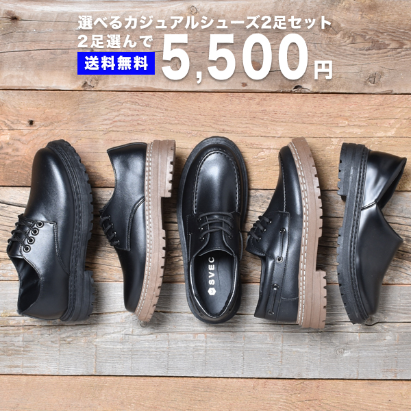カジュアルシューズ メンズ 2足セット おしゃれ 厚底 ローファー スリッポン ブラック 黒 靴 シューズ SVEC シュベック