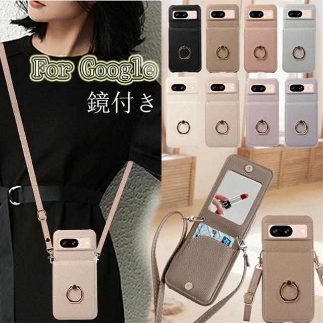 ミラー付き Google Pixel9A 8A ケース かわいい グーグルピクセル8aケース 肩掛け ショルダー タイプ Pixel10 A Pixel 7aケース Pixel 9 Pro XL カバー スマホショルダー スタンド リング付き カードホルダー Pixel8A Pixel8A ケース カード落ちない 携帯ケース 鏡 カード入れ