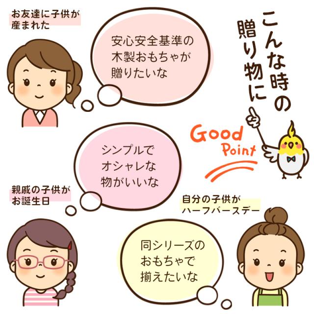 | お相手のことを想い、贈り物をする 出産祝い、、誕生日プレゼント、、どんなものを贈ればいいんだろう・・・?そんな風に悩んだことがある人も多いと思います。 ギフトにおいて大切なのが、「相手が喜んでくれるところを想像する」ことです。マルハートでは、この気持ちを大切に、販売する商品を選んでいます。 大人気の WOODY PUDDY(ウッディプッディ)知育ギフトセットなら、安心安全のST基準のおもちゃなので、出産祝いやお誕生日プレゼントとしてバッチリ!自信を持っておすすめいたします! |