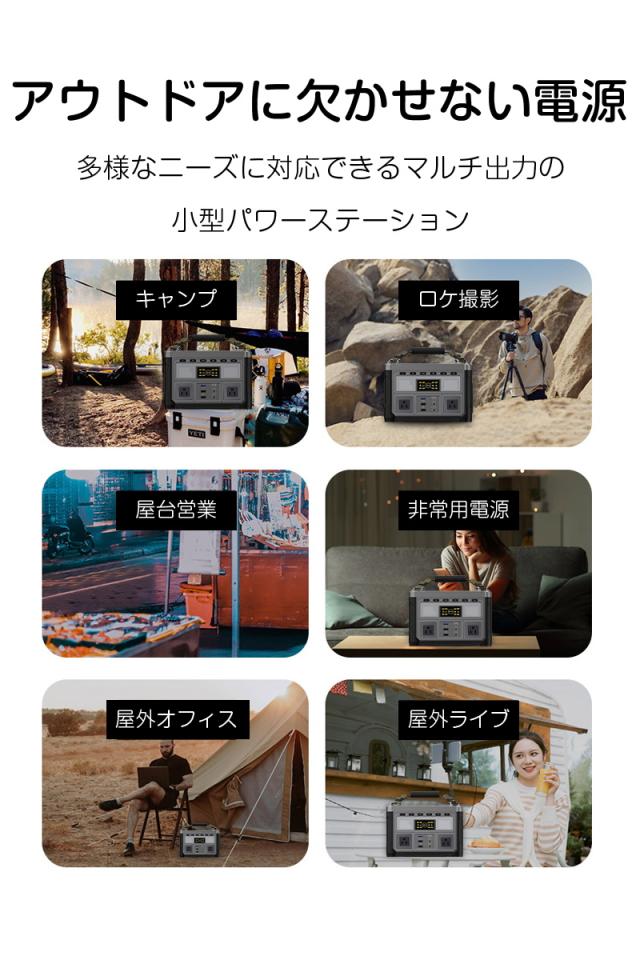 【ポータブル電源とは?】本体に内蔵されているバッテリーに電気を蓄え、外部の機器に給電する機器のこと。キャンプや車中泊にポータブル電源を持っていくことで、寒い季節でも電気毛布などの暖房器具を使用して快適に過ごすことができます。ソーラーチャージャーとつないで使用することもできますので、停電時やアウトドアなど電気がない場所でも安心に使用できます。また、災害時の電力源としても使用できるため、防災用品として常備しておくのもおすすめです。【種類豊富の出力ポート】家庭用AC(360W 純正弦波)*2、USB-A*3、出入力兼用USB-C*1、DC出力*1、シガーソケット出力*1を含む8つの出力ポートを搭載しており、家庭用の家電製品やシガーソケット・USBなどといった複数のケーブルをつなぐことができるのが利点です。【コンパク】Eシリーズポータブル電源352Wh/360Wは小粋なデザイン・クールな機能を持ち運べるので、災害時の非常用電源としての活用はもちろんのこと、キャンプやレジャーをはじめ、ガーデニングやベランダ作業でも大活躍することでしょう。