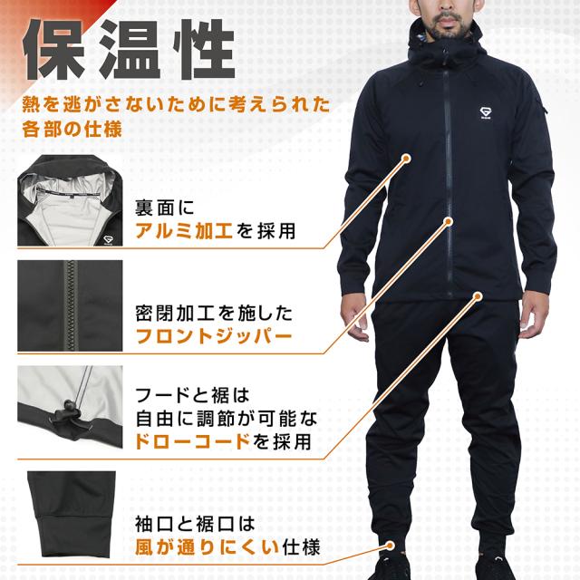 グロング GronG サウナスーツ メンズ レディース 上下セット ウォーキング ランニングウェア 洗濯可能 TPUラミネート加工 2WAYストレッチ生地