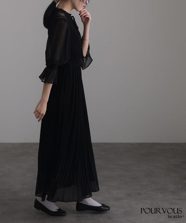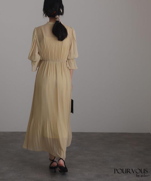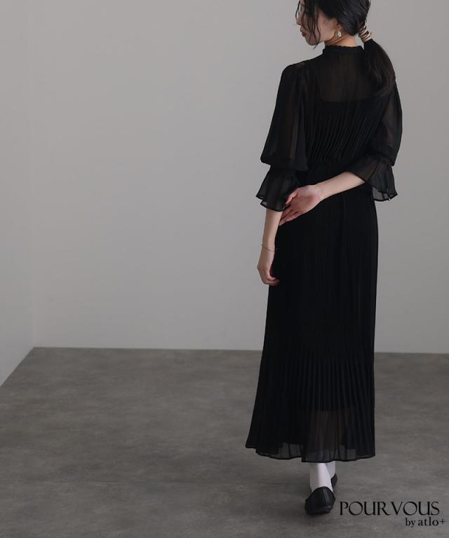 ひざ下からの大胆なシフォンプリーツの切り替えで動くほどふわふわと美しい。
