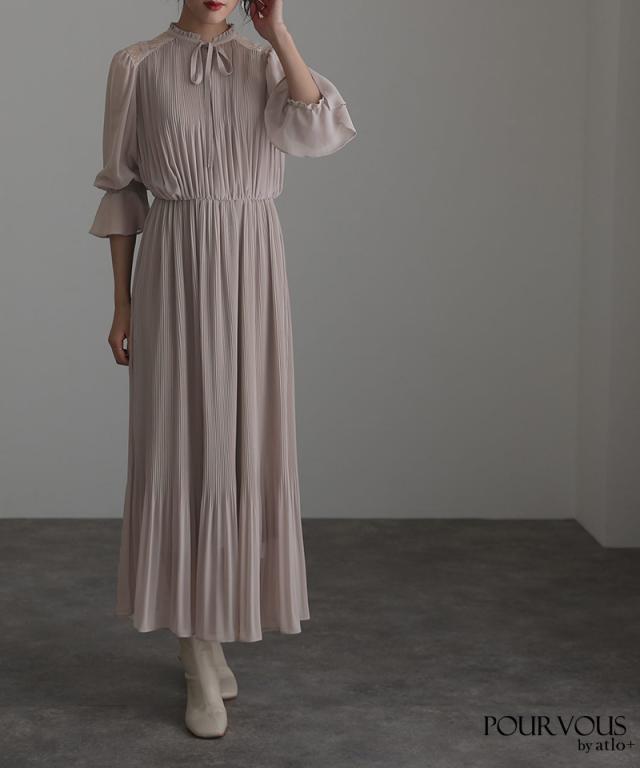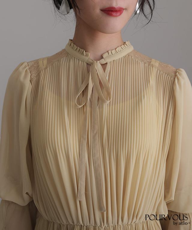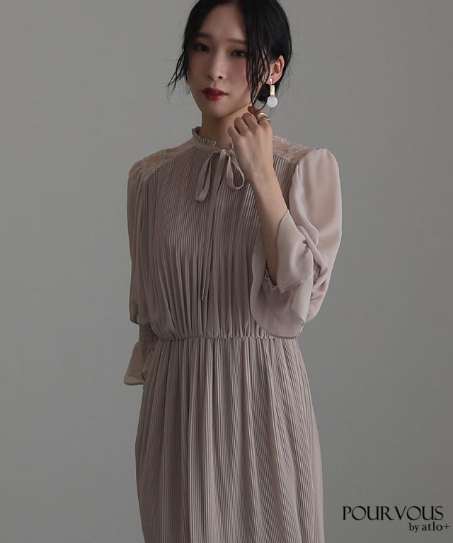 ショルダーレース切り替えシフォンプリーツワンピース/237221638