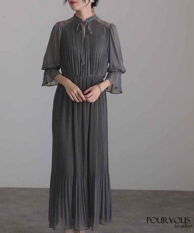 ショルダーレース切り替えシフォンプリーツワンピース【237221638】20代・30代・40代・54代長袖・膝丈・セットアップ・スカート・体型カバー・ジャケット・テーラード・スーツ・大きいサイズなど・即日発送・送料無料結婚式・婚活・披露宴・顔合わせ・二次会・同窓会・お呼ばれ・食事会・謝恩会・親族・七五三・お宮参り・冠婚葬祭・弔事・女子会・デート・入学式・卒業式・入園式・卒園式・ママ・マタニティー・セレモニー・セレブ・パーティー
