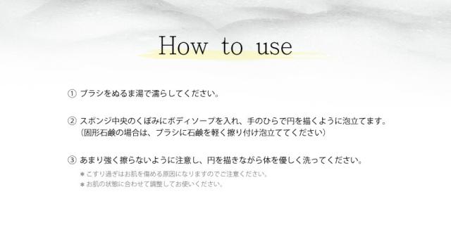 スポンジでしっかり濃密な泡をたてて、柔らかな極細ブラシでやさしく洗い上げます。