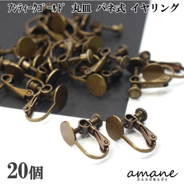 イヤリング パーツ 金具 丸皿 ネジバネ式 アンティーク ゴールド 20個 平皿 イヤリング用金具 バネ式 ハンドメイド アクセサリーパーツ アクセサリー 安い 卸 問屋 手作り セット シンプル