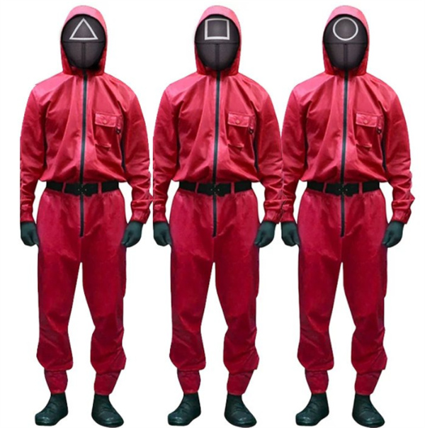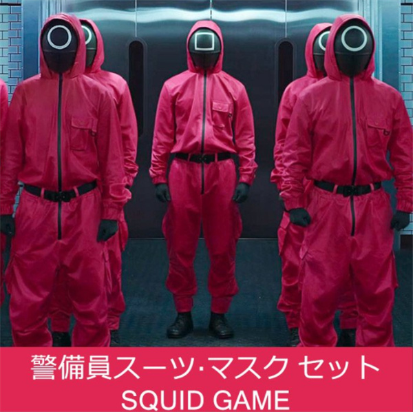 クリスマス イカゲーム風 仮面付き コスプレ服 赤いジャンプスーツ ○△□の警備員のコスプレ衣装 手袋 制服 仮面 オールインワン カバーオール 男女兼用赤い服の人 韓国の服 クリスマス イベンド 2021 Squid Game風