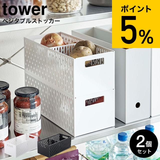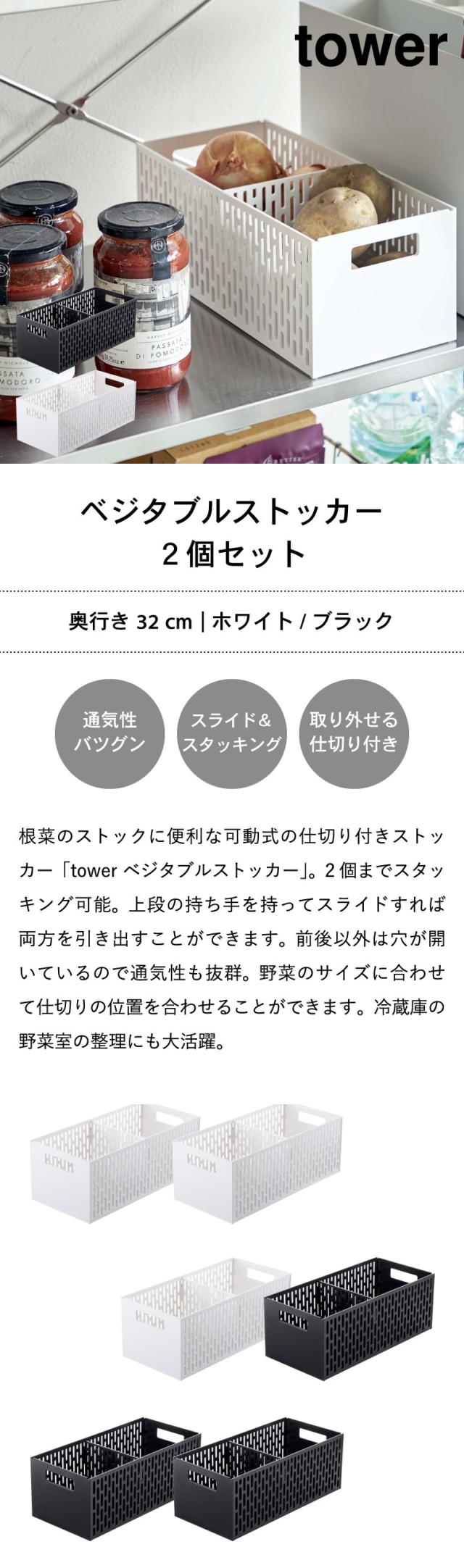 tower 山崎実業 送料無料 ベジタブルストッカー タワー 2個セット ホワイト ブラック 5020 5021 野菜ストッカー 野菜保存 保存容器 ストッカー 保存 収納 野菜収納 野菜 整理 スタッキング可能 通気性 スライド 可動式 仕切り付き タワーシリーズ