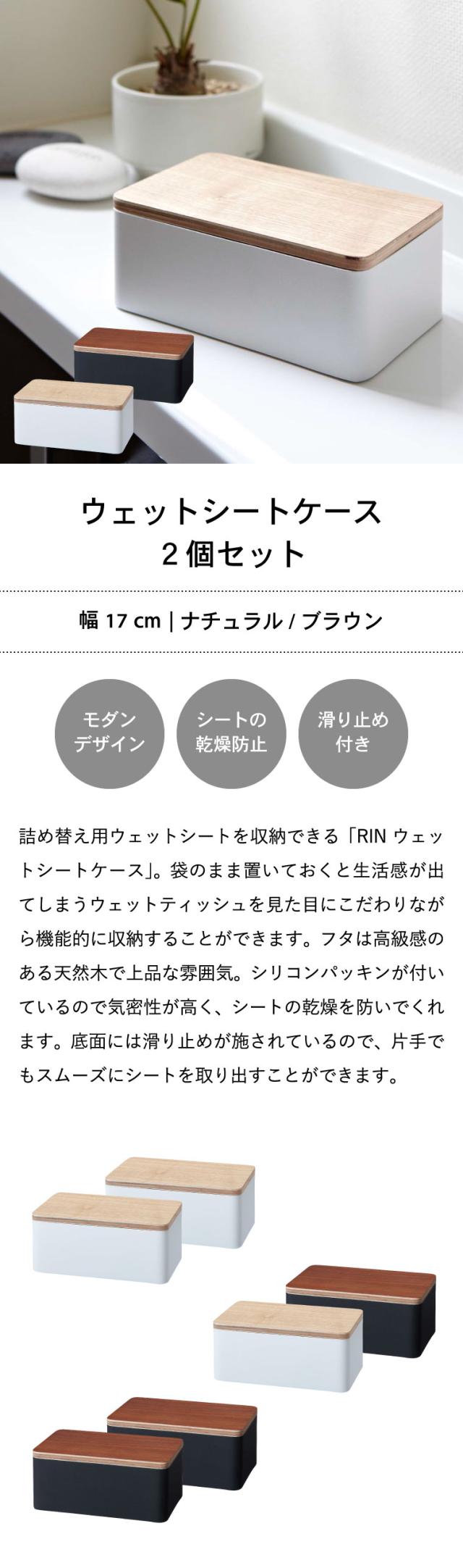 RIN 山崎実業 送料無料 ウェットシートケース リン 2個セット ブラウン ナチュラル 7694 7695 除菌シートボックス 木製 おしゃれ 密封 除菌シート おしりふき フタ付き ふた付き ウェットティッシュカバー リビング キッチン 北欧 タワーシリーズ