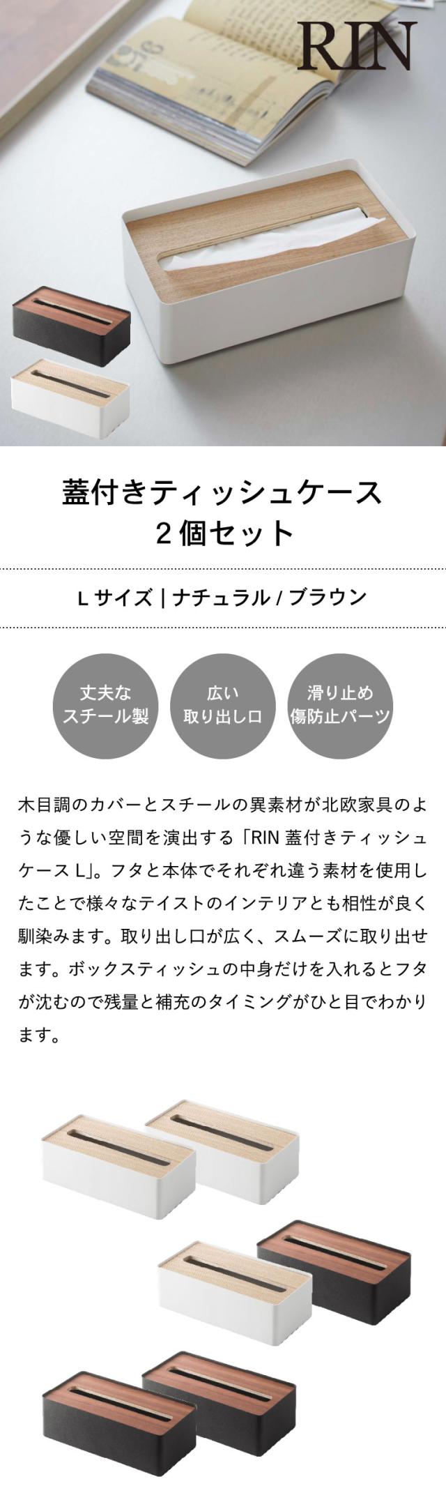 RIN 山崎実業 蓋付きティッシュケース L リン 2個セット ブラウン ナチュラル 7729 7730 送料無料 ティッシュカバー ティッシュ ケース ふた付き フタ付き ナチュラル シンプル 木目 天然木 ウッド リビング サニタリー 洗面所 ティッシュペーパー