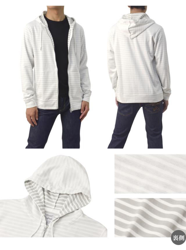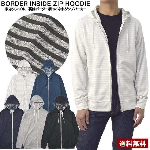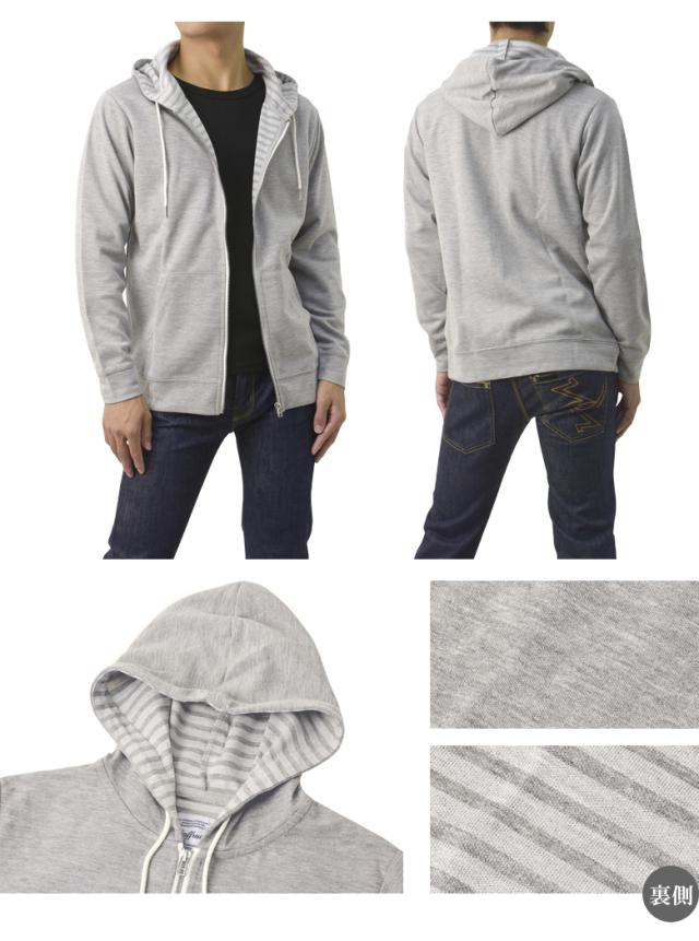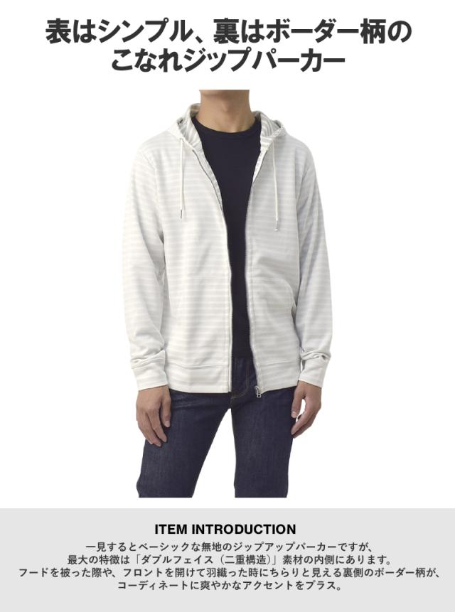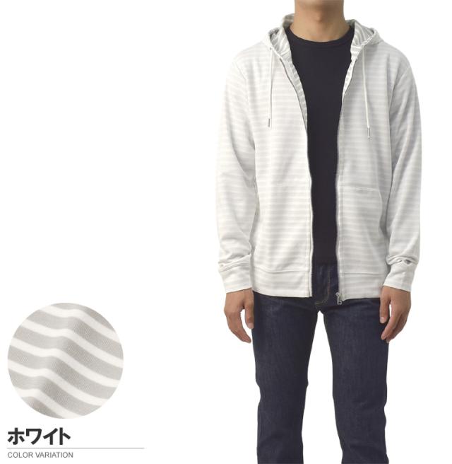 メンズ パーカー ジップアップ 長袖 ダブルフェイス 裏 ボーダー フード付き カンガルーポケット 羽織り アウター トップス スウェット カジュアル シンプル おしゃれ 無地 春 秋 冬【A1N】【パケ1】【A】