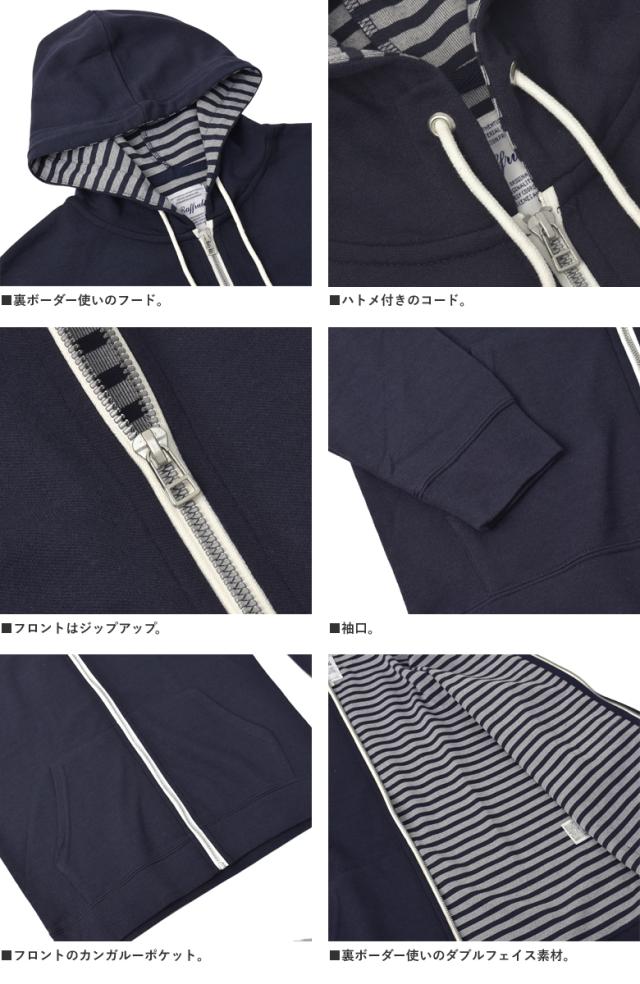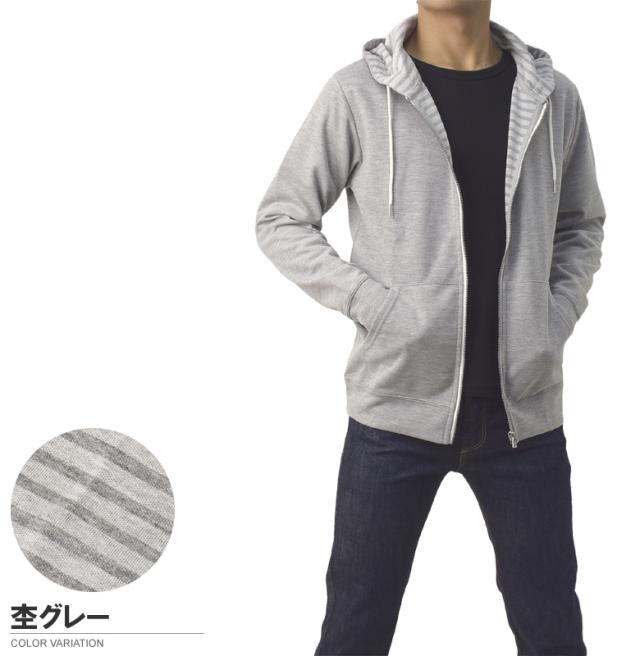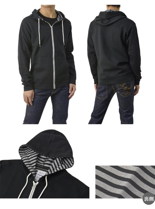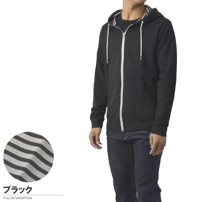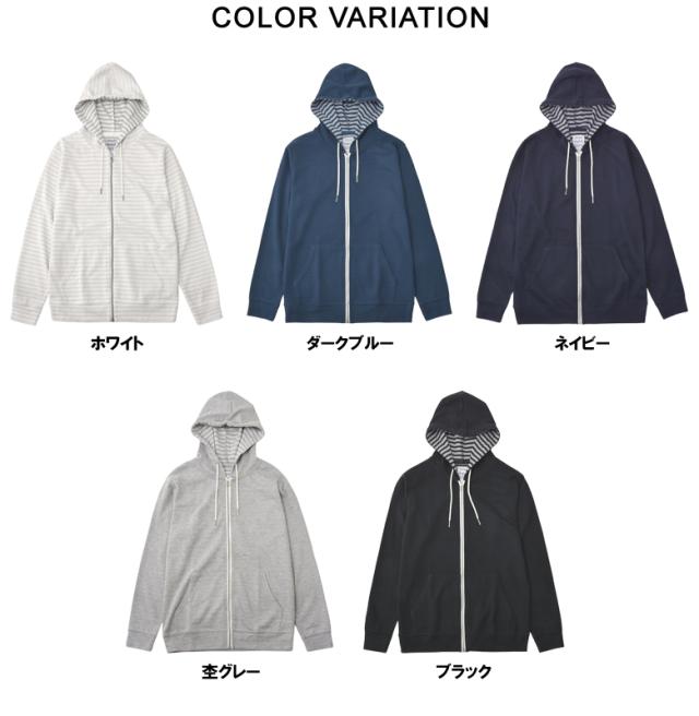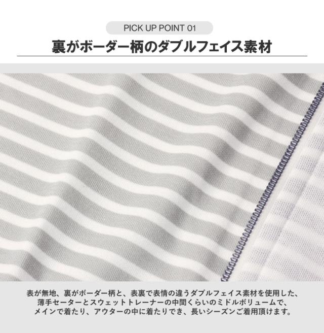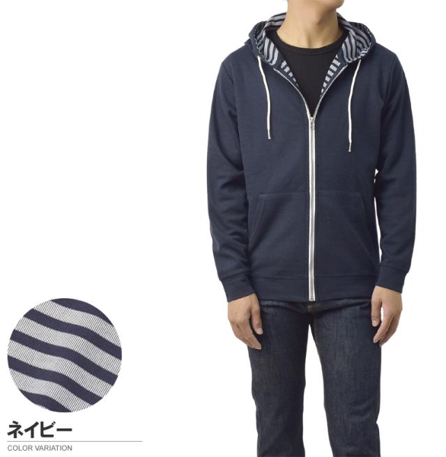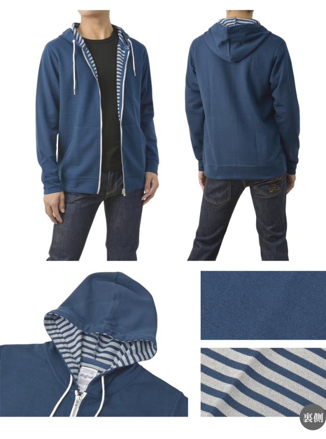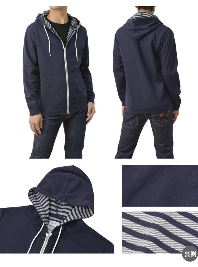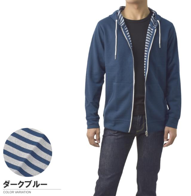 送料無料☆表が無地、裏がボーダー柄のダブルフェイスパーカー