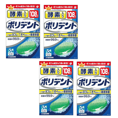 酵素入りポリデント 108錠×4【4個セット】 送料無料 入れ歯洗浄剤 入れ歯