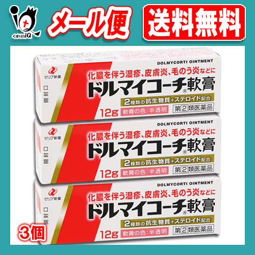 【指定第2類医薬品】ドルマイコーチ軟膏 12g×3個セット【ゼリア新薬】皮膚用薬 化膿を伴うしっしん・皮膚炎に